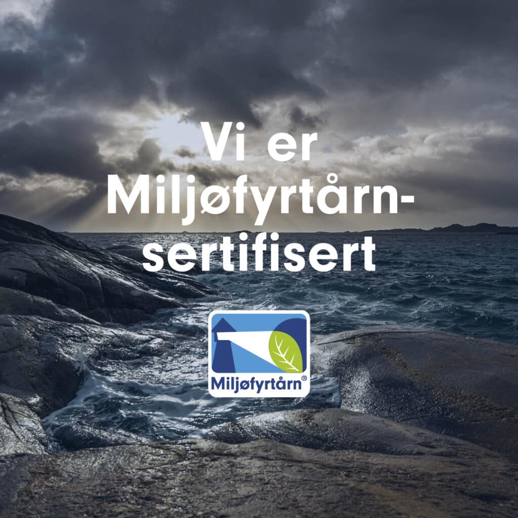 Mai 2024 ble vi sertifiserte som Miljøfyrtårn. Sertifiseringen betyr ikke at vi er 100 % bærekraftige, men det betyr at vi har satt bærekraft ekstra på agendaen og vår ambisjon er å stadig bli bedre.